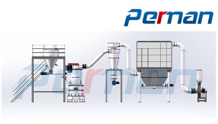 (2)高細度:配備自分流高濃相分級系統,粉碎粒度在D50=5~15um可調。