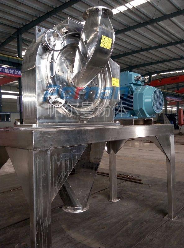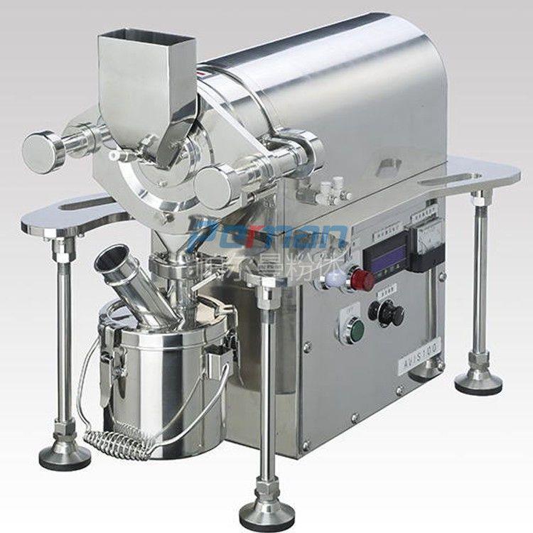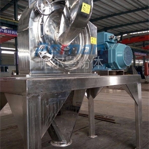 本機由機殼、機門、轉子、定子、主軸、主軸氣封裝置、加料裝置等零部件組成,機殼與機門之間裝有密封圈,防止粉塵泄漏,物料通過可調節振動加料器定量輸入粉碎腔,保證加料過程均勻與連續性。