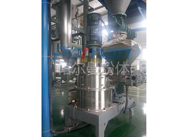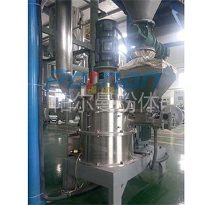 在分級機(jī)裝置中分級設(shè)備主要是由分級葉輪組成的,在物料粉碎過程中能夠把粉碎完的物料進(jìn)行粒徑的篩選,符合顆粒直徑的物料會(huì)通過設(shè)備中的出料口進(jìn)行輸出進(jìn)入到旋風(fēng)收集器中進(jìn)行集中收集然后實(shí)現(xiàn)出料。未符合顆粒直徑的物料會(huì)繼續(xù)沿著腔體內(nèi)壁僅需回落到粉碎室中繼續(xù)進(jìn)行二次粉碎直到達(dá)到標(biāo)準(zhǔn)為止。