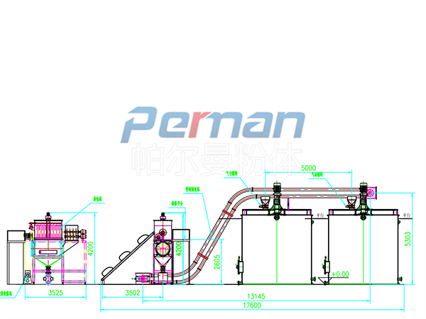 生產原材料會在皮帶輸送的作用進行進入到無塵拆包機中進行拆包作業,分離出的散料會在出料口直接進入到管鏈輸送機設備入料口中進行傳輸作業。
