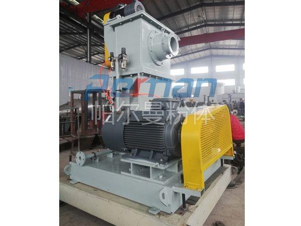 負壓空氣研磨系統的設備積垢問題經常是討論的焦點。設備的清洗,特別是輸送風機的清洗過于耗時。此外,在開機和關機過程中風機葉輪上的積垢還可能剝落,導致風機的振動及其運轉狀態的振蕩。因此可考慮由負壓流程改為正壓流程。在新的工作模式下風機安裝在分級磨之前,將工藝空氣壓入研磨系統。這種工作模式的優點是研磨后的碳酸氫鈉不通過風機運輸,完全避免了風機的積垢問題。此外風機的耗電也有所降低,使經營成本更低,但是對設備的密封性能提出了更高的考驗,無論是設備的設計結構、加工精度及配合都有嚴格的要求,設備的造價成本也會更高。