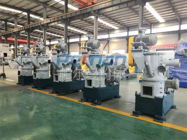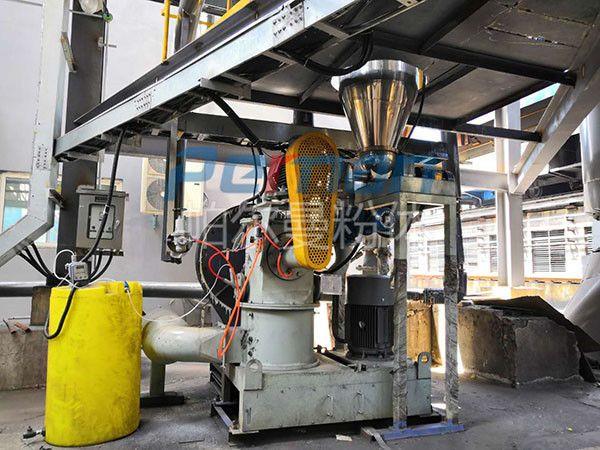 碳酸氫鈉通過失重螺旋喂料稱定量均勻喂料進入CAM空氣分級磨,通過高速旋轉的磨塊與齒圈形成碰撞,摩擦,剪切多種作用力下粉碎,粉碎后隨氣流進入分級區,合格的物料通過分級輪進入煙道進行反應,粗料落入粉碎區繼續粉碎,顆粒的大小可調整分級輪的轉速獲得。