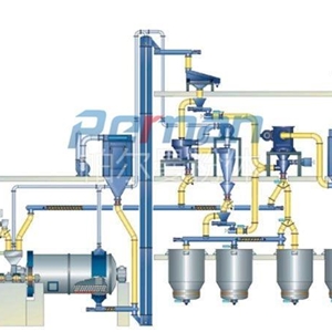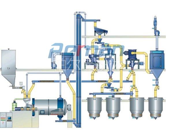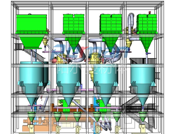 ● 電控系統(tǒng)采用程序控制,控制整個生產流程,從進料料倉、研磨分級,直到產品包裝。